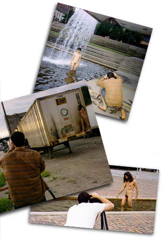 The couple, Jared and Jen. Jared in the water and Jen at another location on a truck that says not food. They are a great couple- funny and very pretty. She is so animated and sparkily. Great shoot. We have breakfast afterwards with Jared and Jen and take a nap to wake up. I buy some overalls and Spencer buys some jeans. We have a delicious lunch and coffee and hit the road.